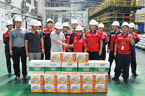 7月31日,,,,,,,江苏省新沂市开发区管委会一行开展“进企业,,,,,,,送清凉” 运动,,,,,,,慰问仍坚持斗争在一线的徐州卧牛山员工。。。。。。