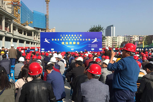 克日,,,,,三门峡市举行2018年建设工程质量标准化暨质量常见问题治理和扬尘治理现场观摩会,,,,,由三门峡市住房和城乡建设局、湖滨区人民政府、湖滨区都会住宅开发公司和中建七局承办。。。。。。。市住房和城乡建设局、市建设工程质量监视站、中建七局等相关单位认真人,,,,,以及来自全市各县区住建局、各建设单位、施工单位、监理单位认真人等千余人加入了本次观摩运动。。。。。。。东方优德88官网网站受邀加入本次观摩会并作标准化施工的先容。。。。。。。