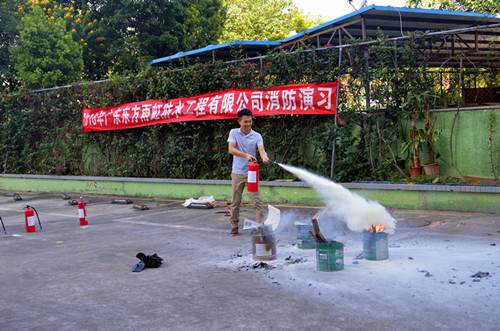 员工举行灭火器使用学习及演练