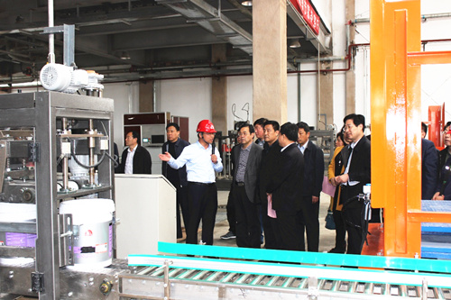 刘晓俊厂长为考察团先容涂料生产线